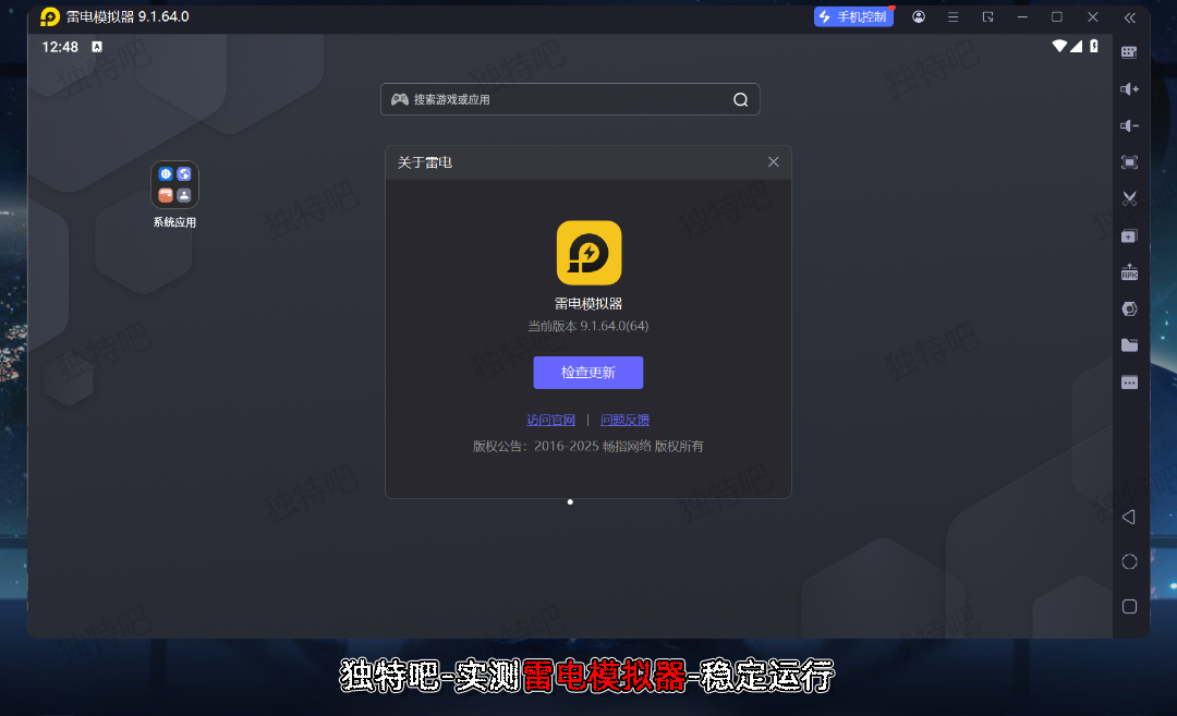 为此,雷电模拟器9(64) v9.1.64.0 去广告绿色纯净版应运而生。这不仅是一款安卓模拟器,更是一个为PC端手游玩家量身打造的全能游戏平台。它基于官方最新版本深度优化,采用Android 9-x86_64系统内核,性能强劲、兼容性广,支持OpenGL 3.1 3D渲染,确保各类大型3D手游流畅运行,真正实现“手机游戏,电脑畅玩”的跨平台体验。