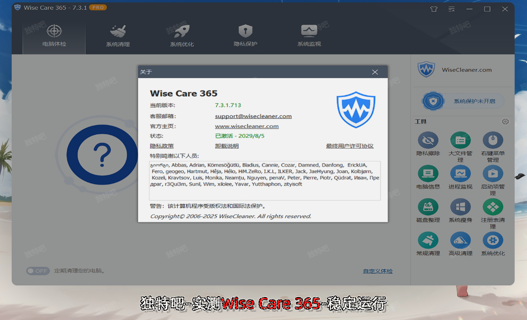Wise Care 365 Pro v7.3.1.713 多语便携版 作为全球知名的系统优化与清理软件,集电脑体检、系统清理、注册表修复、隐私保护、性能优化、硬件监控于一体,被誉为“Windows系统的全能医生”。本次发布的版本为永久激活绿色便携版,经过深度精简与优化处理,彻底去除广告、弹窗、强制升级、在线功能依赖等冗余设计,真正做到“轻量、纯净、高效”,是每一位Windows用户提升电脑性能的必备利器。