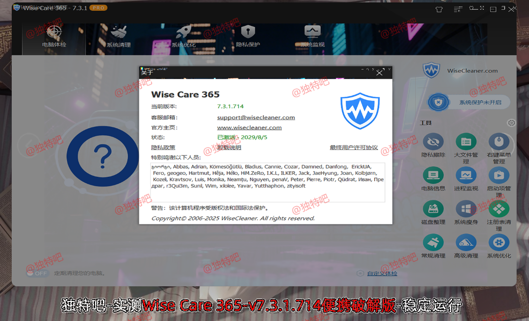 而今天我们要介绍的 Wise Care 365 Pro v7.3.1.714 多语便携版,更是在官方专业版基础上进行深度优化的定制版本。它不仅永久激活专业功能,还彻底去除广告、禁止自动升级、精简冗余组件、优化界面布局,打造出一款真正纯净、高效、便携的系统优化利器。