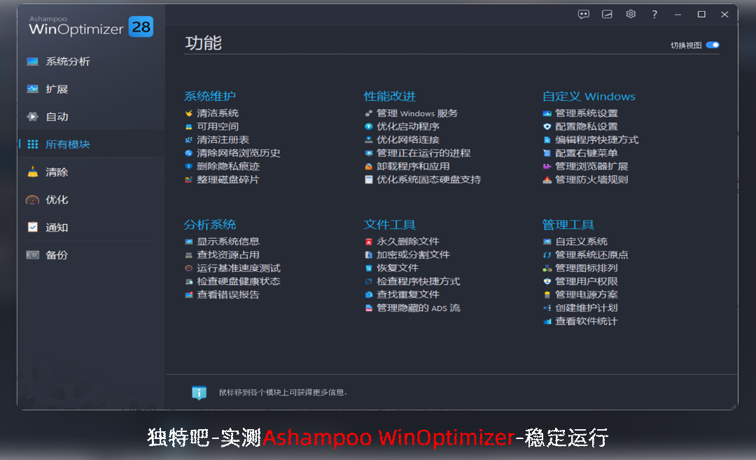 随着使用时间的增长,任何电脑都会逐渐变慢。而 Ashampoo WinOptimizer v28.00.14 多语便携版 的存在,正是为了逆转这一趋势。它不是简单的“垃圾清理器”,而是一位懂系统的“私人医生”,从底层出发,全面调理,让您的电脑重获新生。
